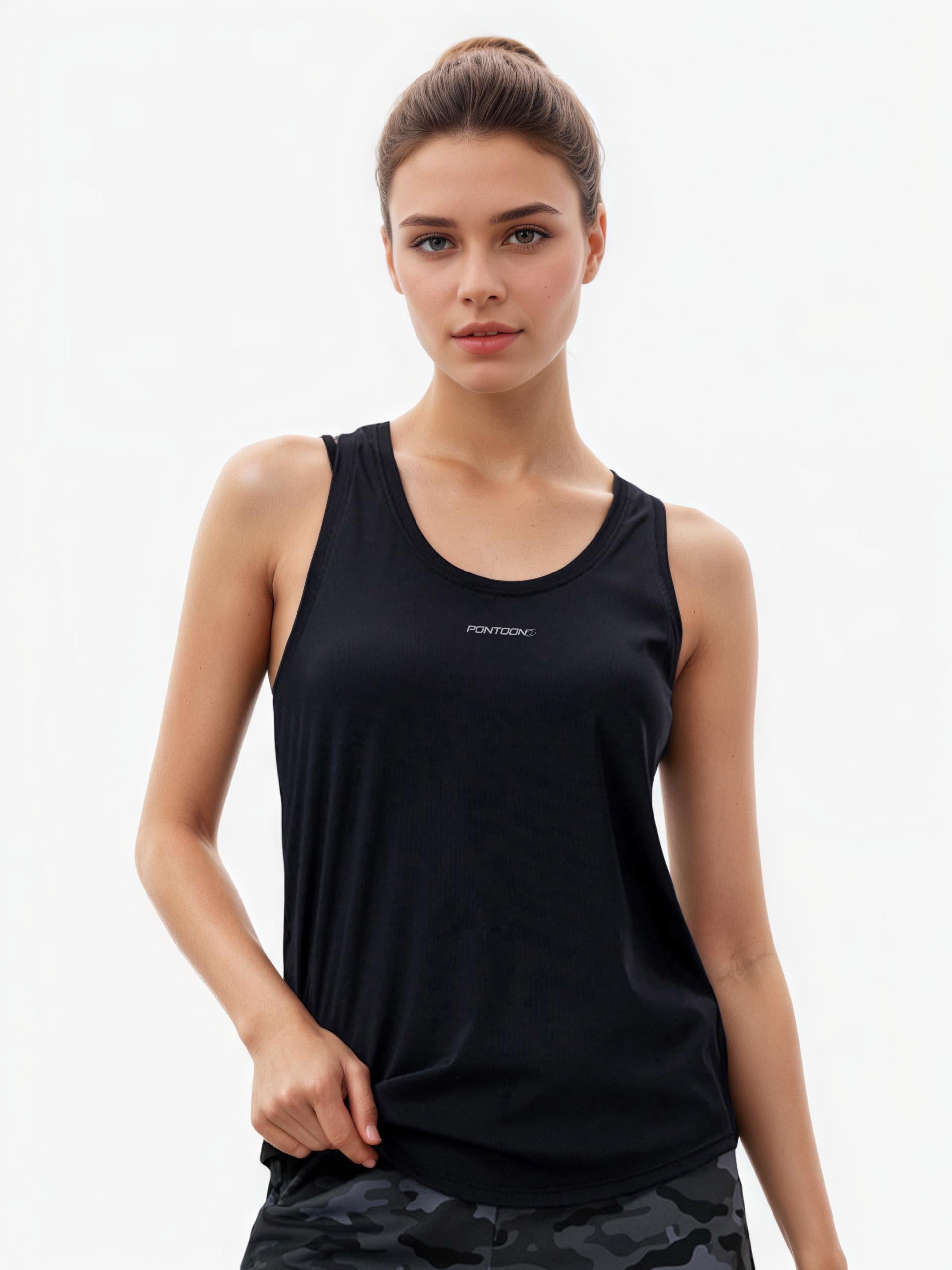 Women’s Ribbed Lycra Tank – Cooling Workout Top – Black – Yoga & Gym Activewear